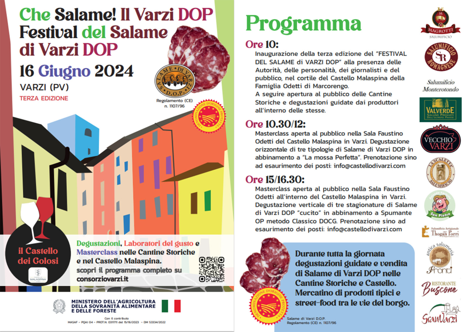 Domenica 16 giugno 2024 il cuore dell’Alto Oltrepò Pavese è tornato ad accogliere uno degli eventi più gustosi dell’anno: la terza edizione di Che Salame! Il Varzi Dop: Festival del Salame di Varzi DOP, organizzato dal Consorzio di Tutela.