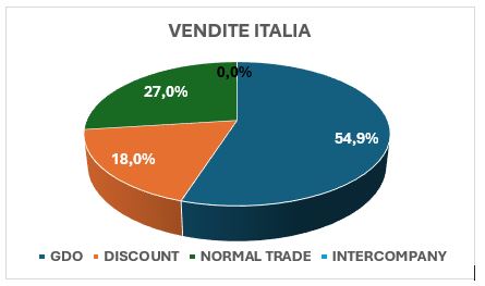 In Italia, la GDO si conferma il principale canale di vendita con una quota del 54,9%, seguita dal Normal Trade col 27% e dal Discount col 18,0%.