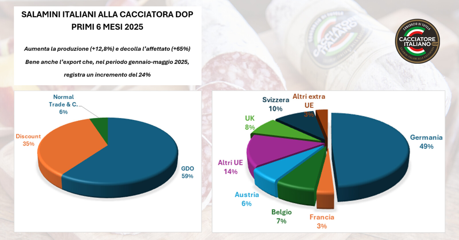 SALAMINI ITALIANI ALLA CACCIATORA DOP: POSITIVI I PRIMI 6 MESI 2025