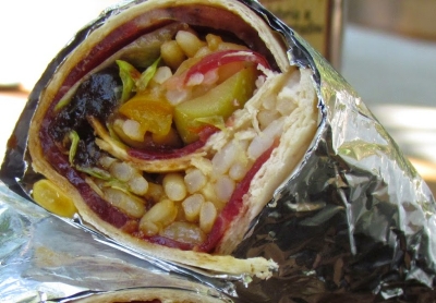 Arrotolare e chiudere con della carta di alluminio la tortilla riscaldata precedentemente in una piastra a media temperatura.